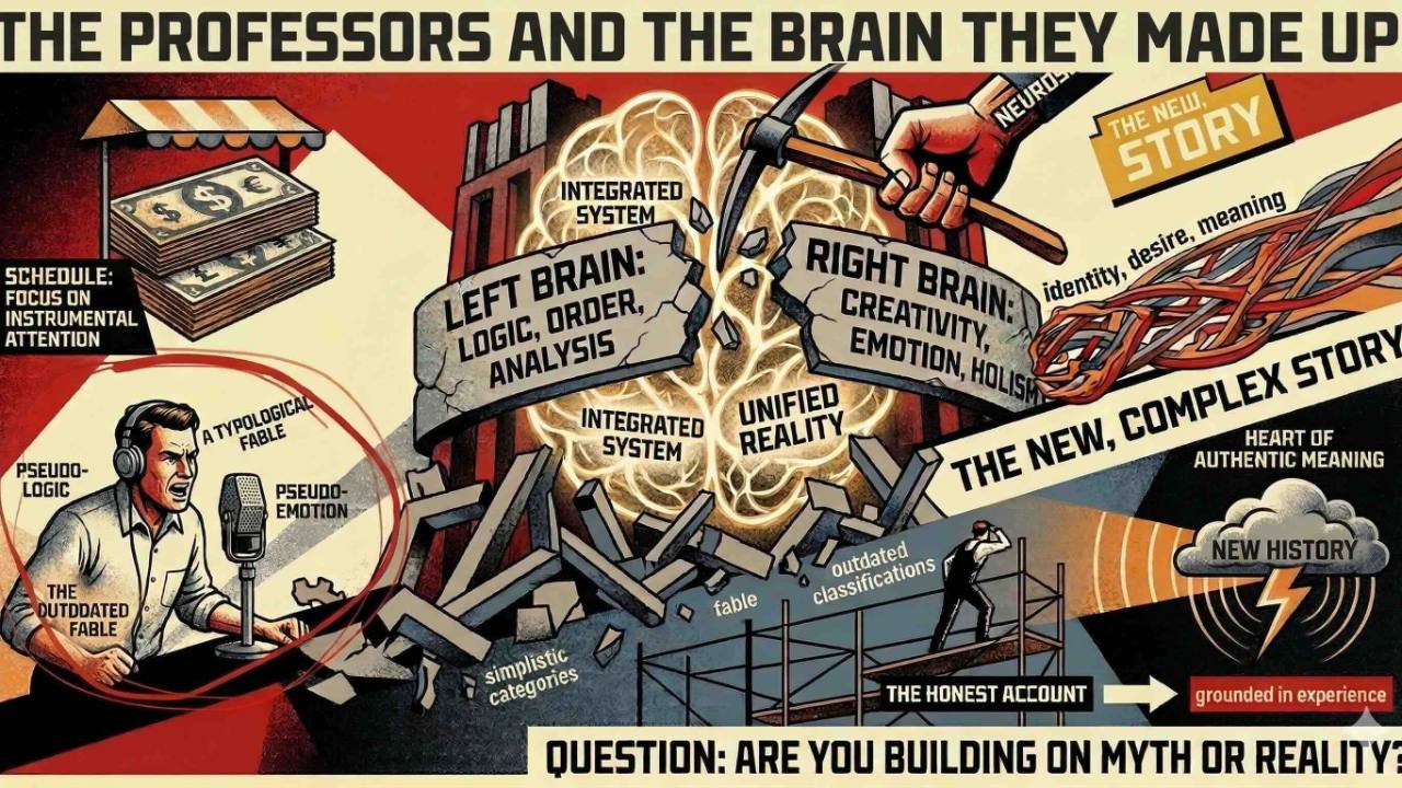 Arthur Brooks is out with a new book and selling the left-brain/right-brain framework on every podcast in America.